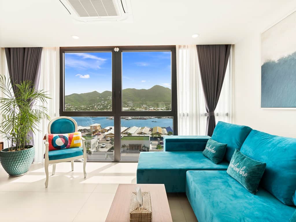 Nous avons l'honneur de vousprésenterl’appartement A-131 avec sa vue exceptionnelle sur le lagon de la RésidenceThe Hills, à Simpson Bay !