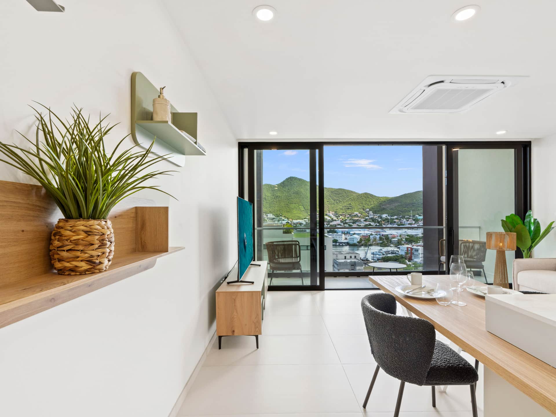 Découvrez l'appartement 312 dans le bâtiment 3 de la résidence The Hills. Cet élégant appartement d'une chambre comprend une cuisine entièrement équipée, une salle de bains moderne et un séjour lumineux. Profitez de la vue panoramique sur le lagon depuis le balcon privé, idéal pour savourer votre café du matin ou admirer le coucher du soleil. Alliant confort, charme et tranquillité, c'est une escapade idéale au cœur de Simpson Bay, à Sint Maarten.