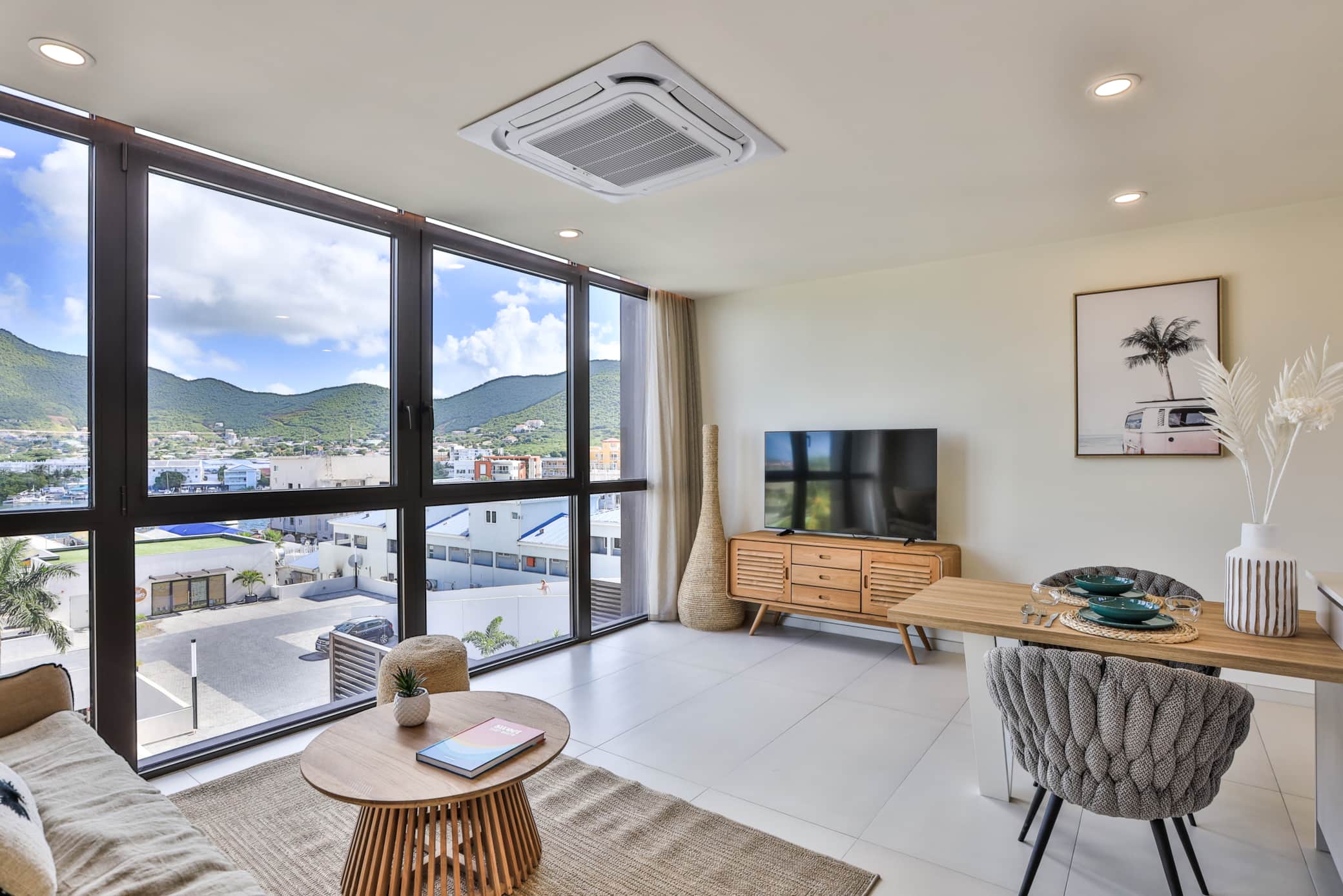 Découvrez l’appartement C-345, situé au 4ᵉ étage de The Hills Residence. Ce 1-chambre offre un espace moderne et lumineux avec une vue paisible sur le lagon grâce aux grandes baies vitrées. Cuisine entièrement équipée, chambre confortable avec linge fourni. Profitez du parking sécurisé, ainsi que de la piscine et du jacuzzi sur le toit. À quelques pas de Simpson Bay : plages, marina, restaurants, boutiques et vie nocturne. Le parfait équilibre entre détente et divertissement !