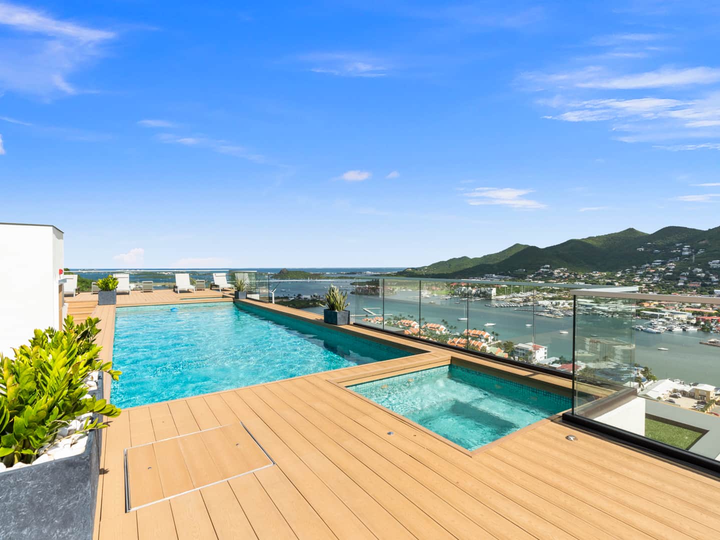 Découvrez l'appartement D436, un charmant appartement d'une chambre avec balcon et vue imprenable sur le lagon de Simpson Bay. Moderne et lumineux, il comprend une cuisine entièrement équipée, une salle de bains élégante et un espace de vie confortable. Idéal pour les couples, il offre calme et confort, avec accès à la piscine et au jacuzzi sur le toit. Une voiture est recommandée pour profiter pleinement de Saint-Martin.